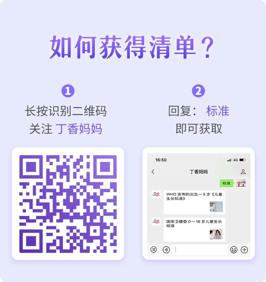 如果需要,可以長按識別下方二維碼,發送:標準,即可獲得,並附有「 7~18 歲身高標準」。