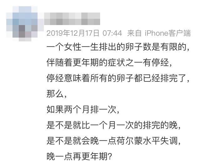 也有人認爲:經期間隔時間短,排卵速度快,「女性一生的卵子限定數 400 多顆」就會越快排完,就會老得更快。