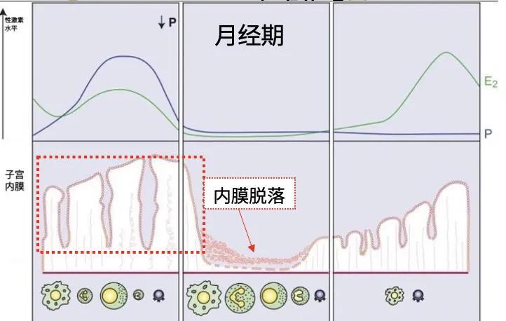 每個月子宮都會爲了迎接受精卵(受孕)做好準備,在雌激素、孕激素的刺激下,子宮內膜變得「肥沃」,內膜厚度一下子上漲 6 倍:從 1 毫米增加到 6 毫米以上。假如這個月沒能等到受精卵,激素水平便會「唰」地一下下降,內膜就會自然脫落、出血、排出體外。