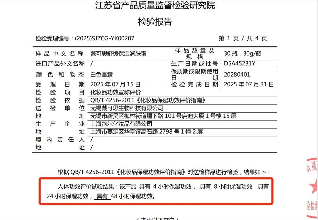 咱自己說了不算,戴可思委託權威第三方進行人體功效實驗、體外舒緩功效檢驗、敏感肌斑貼,報告顯示——