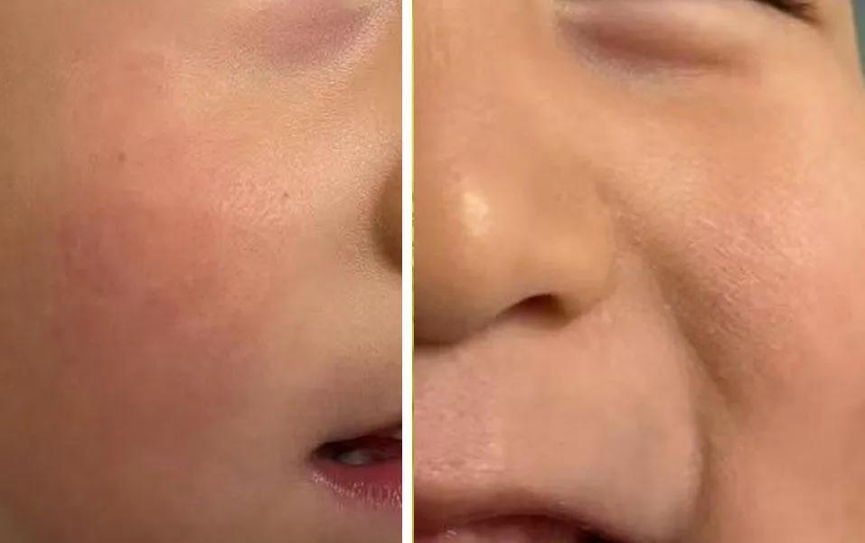 再來看看連續塗了兩天,我家娃的臉蛋子——