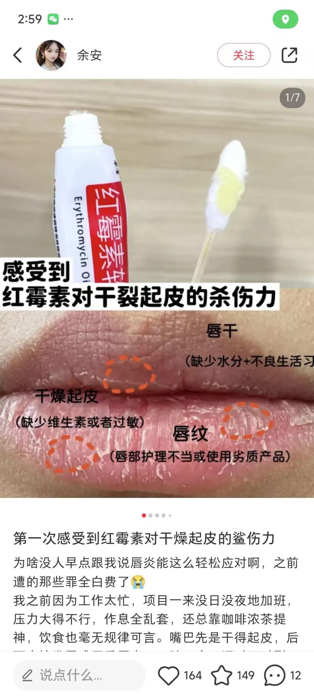 真可能有點點道理的,是有些網友嘴脣乾裂起皮時用紅黴素覺得有效果,但這也不是紅黴素的功勞,而是因爲紅黴素軟膏裏,有一定含量保溼效果的凡士林