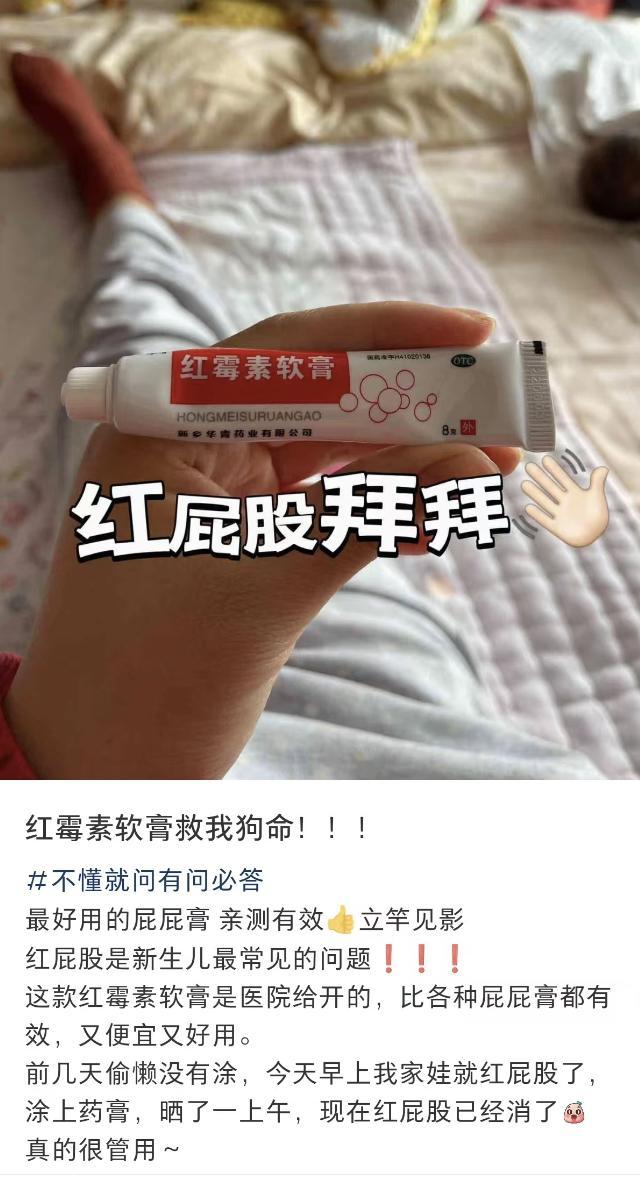 在媽媽羣體裏,紅黴素軟膏也被吹捧成了「神藥」: