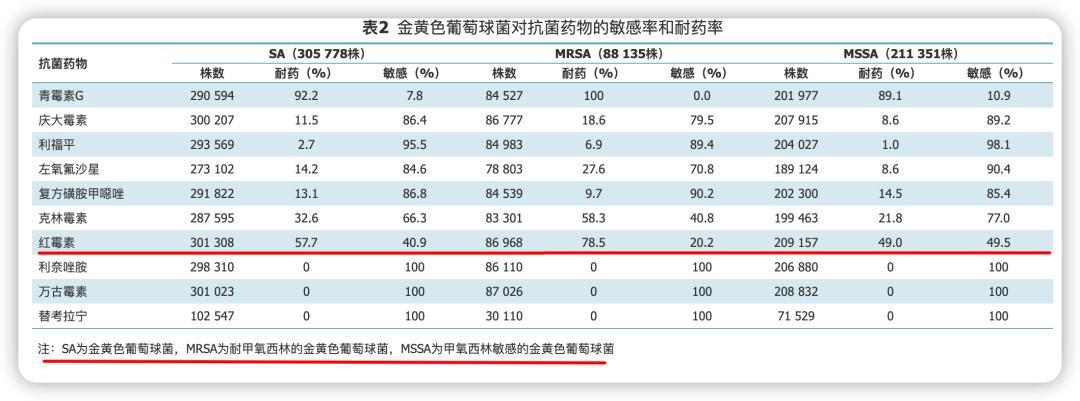 2020 年的監測數據顯示,耐甲氧西林葡萄球菌對紅黴素的耐藥率爲 78.5%,呈現高耐藥性水平。
