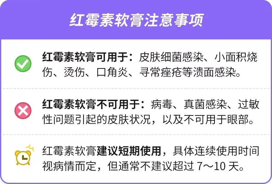 最後,再給大家總結一張使用紅黴素軟膏的注意事項: