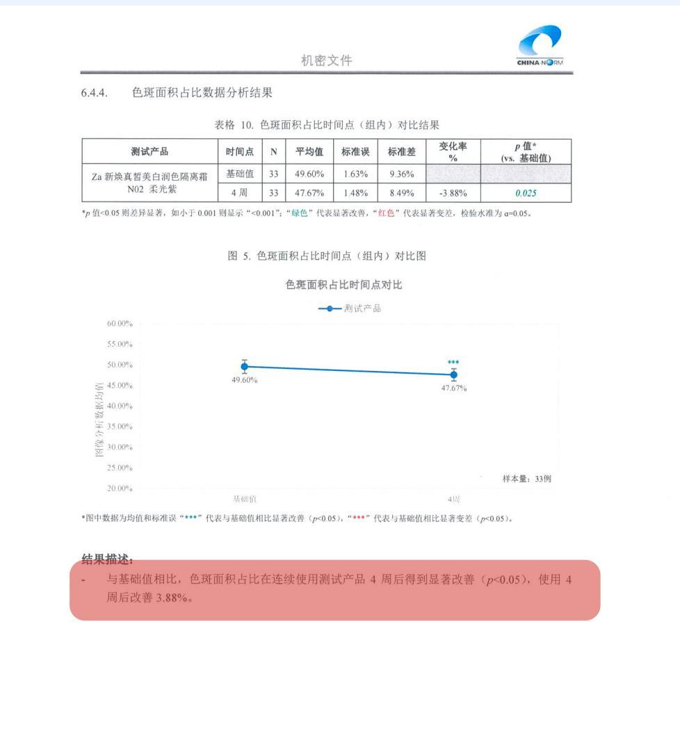 連續使用 28 天,黑色素減少 10.38 %、色斑降低 3.88 %;實實在在的功效報告在手,用得更安心!