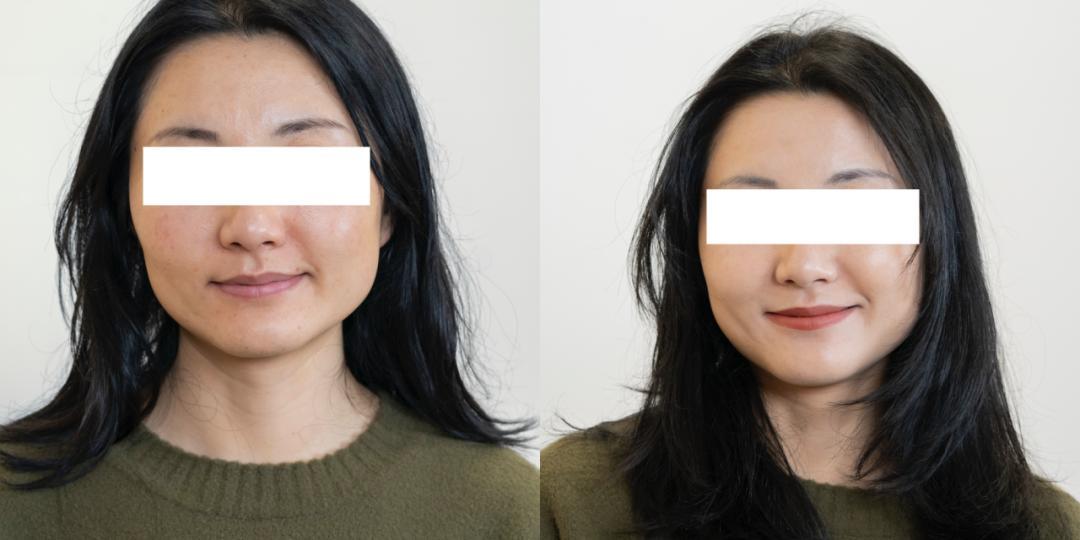 還可以看到,原來有些暗沉粗糙的面部,像是被整體加了一層柔光濾鏡——膚色均勻亮白了很多,就連大大的毛孔、泛紅,黑眼圈等皮膚問題,都能被很好地掩藏起來!