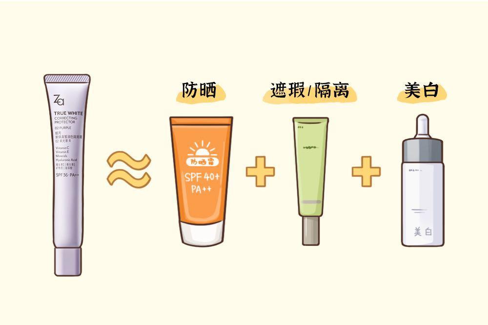 日常咱們自己用 Za 防曬隔離,單獨當防曬 + 素顏霜用也可以,想要更精緻無暇的妝面,做妝前打底、日常修容潤色也可以。