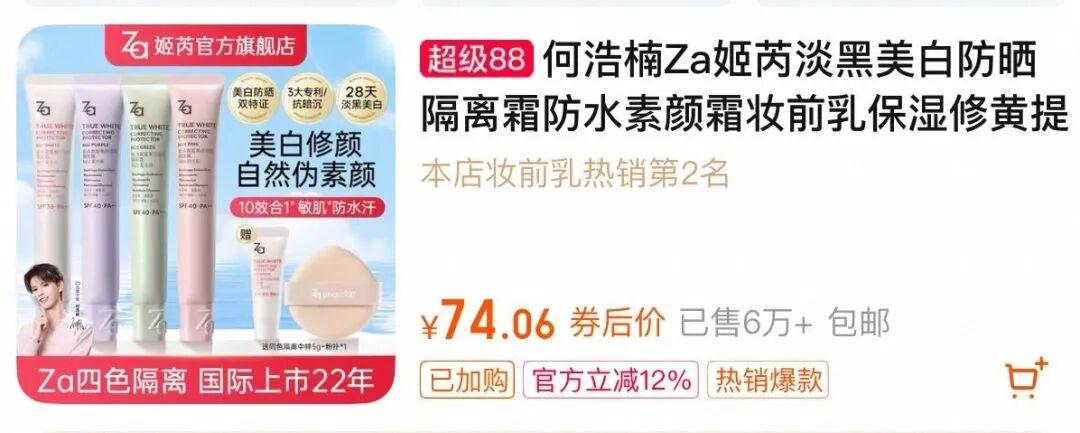 而 Za 這款防曬採用了以物理防曬爲主,化學防曬爲輔的配方體系。