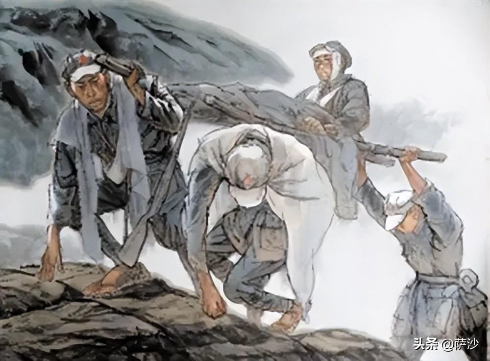在贛南山路快速行軍,抬擔架的戰士平均每人負重六七十斤。幾天走下來,就算鐵打的身子也受不了,必須三人輪換休息。