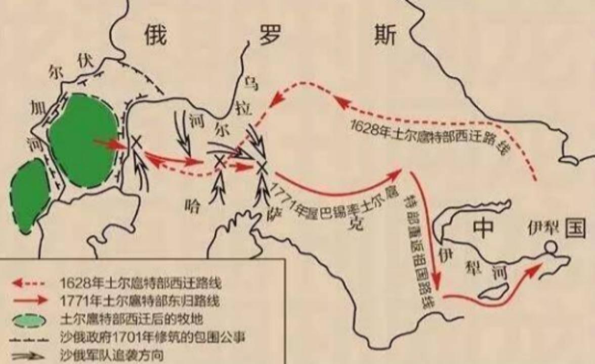 17世紀,土爾扈特部生活在新疆塔城一帶,跟相鄰的準噶爾汗國不和,土爾扈特部人少勢弱,打不過準噶爾,被迫離開塔城,遷移到伏爾加河下游地區。他們在那裏繁衍生息,並建立汗國。但是後來沙俄來了,他們被迫臣服於沙俄。