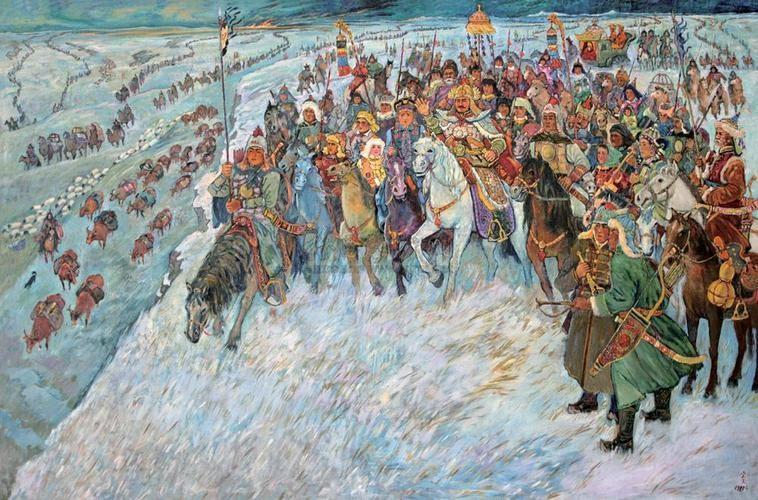 而那年的氣候非常特殊,伏爾加河因爲暖冬的緣故遲遲沒有封凍,這樣河南岸的1萬戶部族百姓就無法渡河,渥巴錫只好帶着北岸的3萬戶羣衆單獨動身。