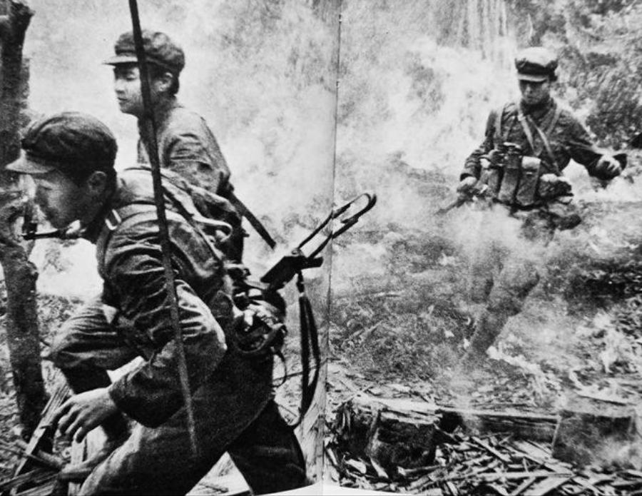 據說當時在戰場上沒法及時更換鞋子,解放軍就找來有經驗的獵人,讓獵人出主意,獵人說可以砍一截樹樁,把樹樁往前滾,用來排竹刺陣。