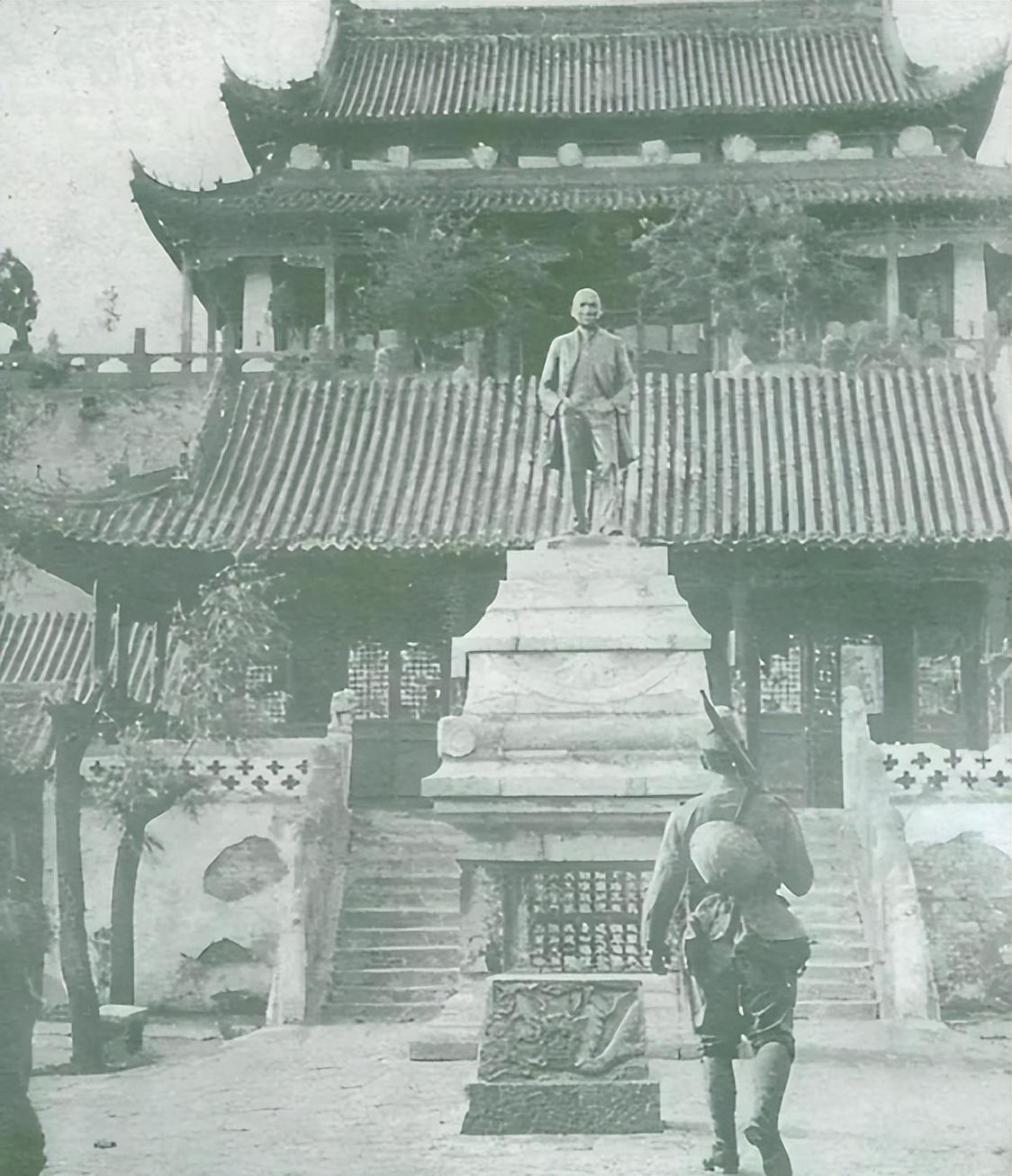 龍亭公園位於開封西北角,地勢較高,位置重要,日本人當然不會放過這裏。來到公園後,他們也看到了矗立於公園裏的中山先生的銅像。