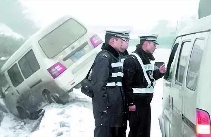 (交警處理大雪中的車禍案件)