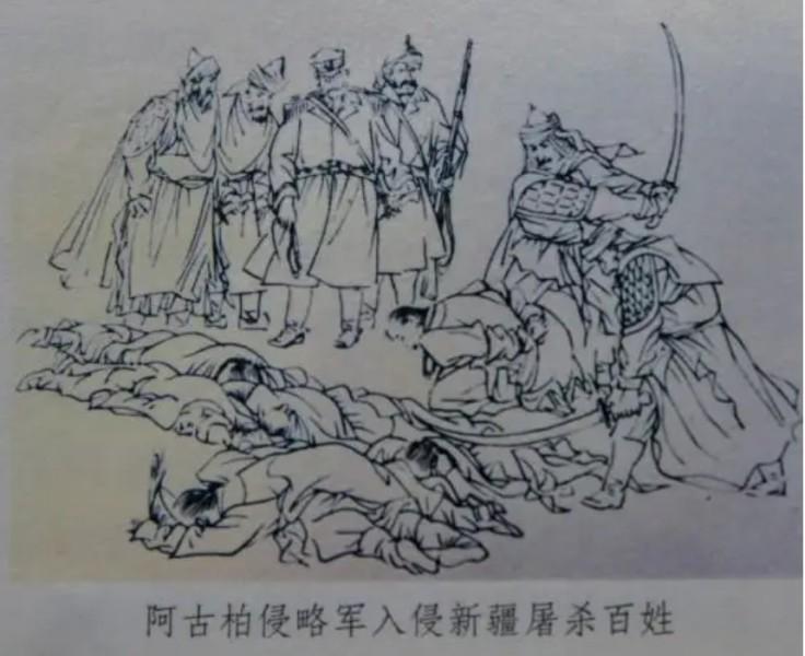 阿古柏好殺殘忍,他帶領的軍隊也是如此,經常不分老幼一通亂砍,所過之地哀嚎遍野。比如攻下和田之後,5萬餘百姓被其屠戮。