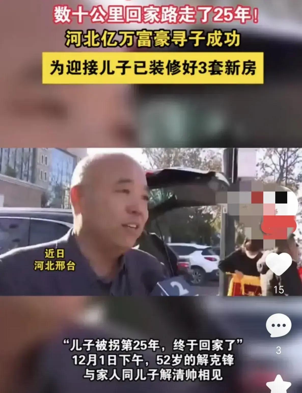 “河北億萬富豪”歷經25年尋子成功 兒子將回歸原生家庭 想在年前爲他們辦婚事--央視網.成都商報.