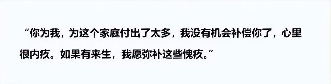 妻子不僅將自己的生活照顧的妥妥貼貼,在他生病後,更是不離不棄,一直在身邊照顧他。他無愧於自己的一生,卻對妻子懷有深深的愧疚。