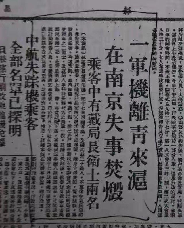 (新聞上報道戴笠去世)