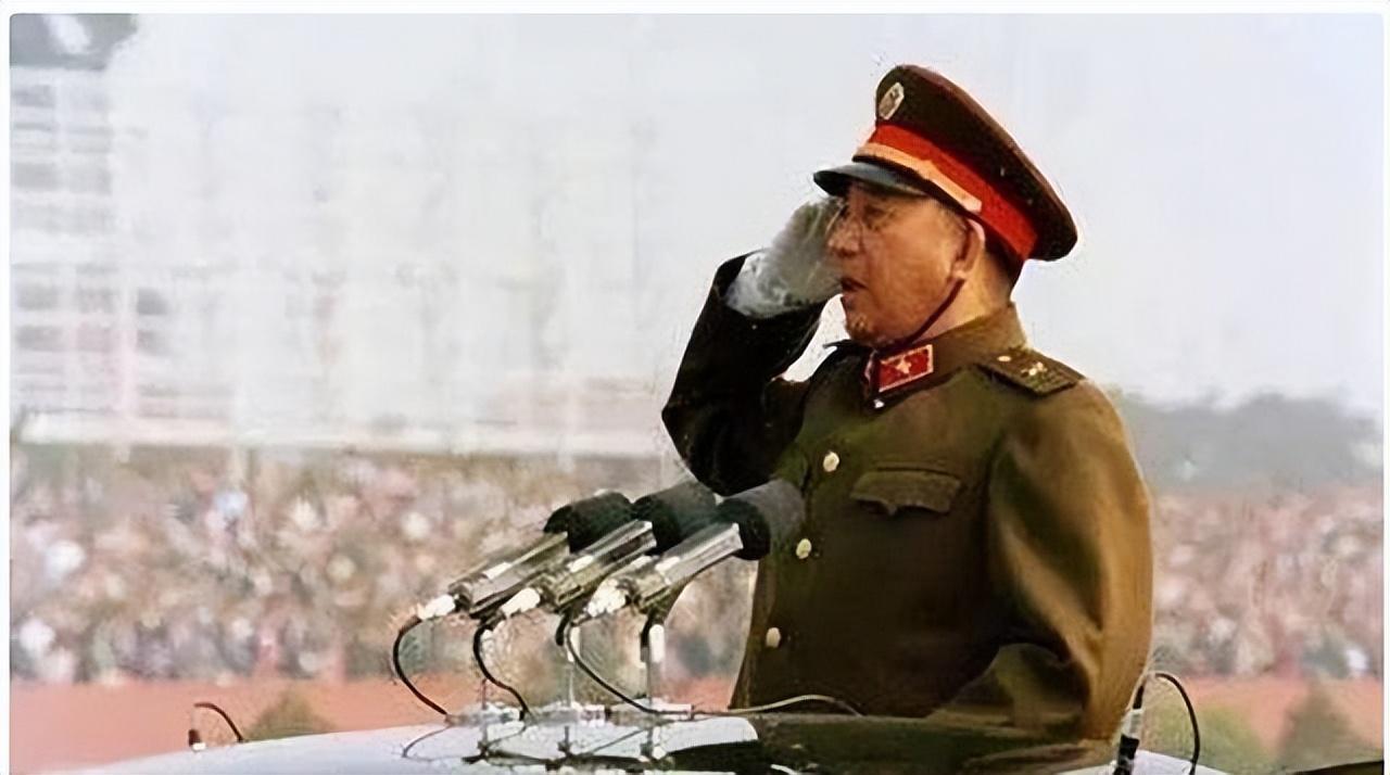 “軍委主席,慶祝建國35週年受閱部隊列隊完畢,請您檢閱,閱兵總指揮秦基偉。”