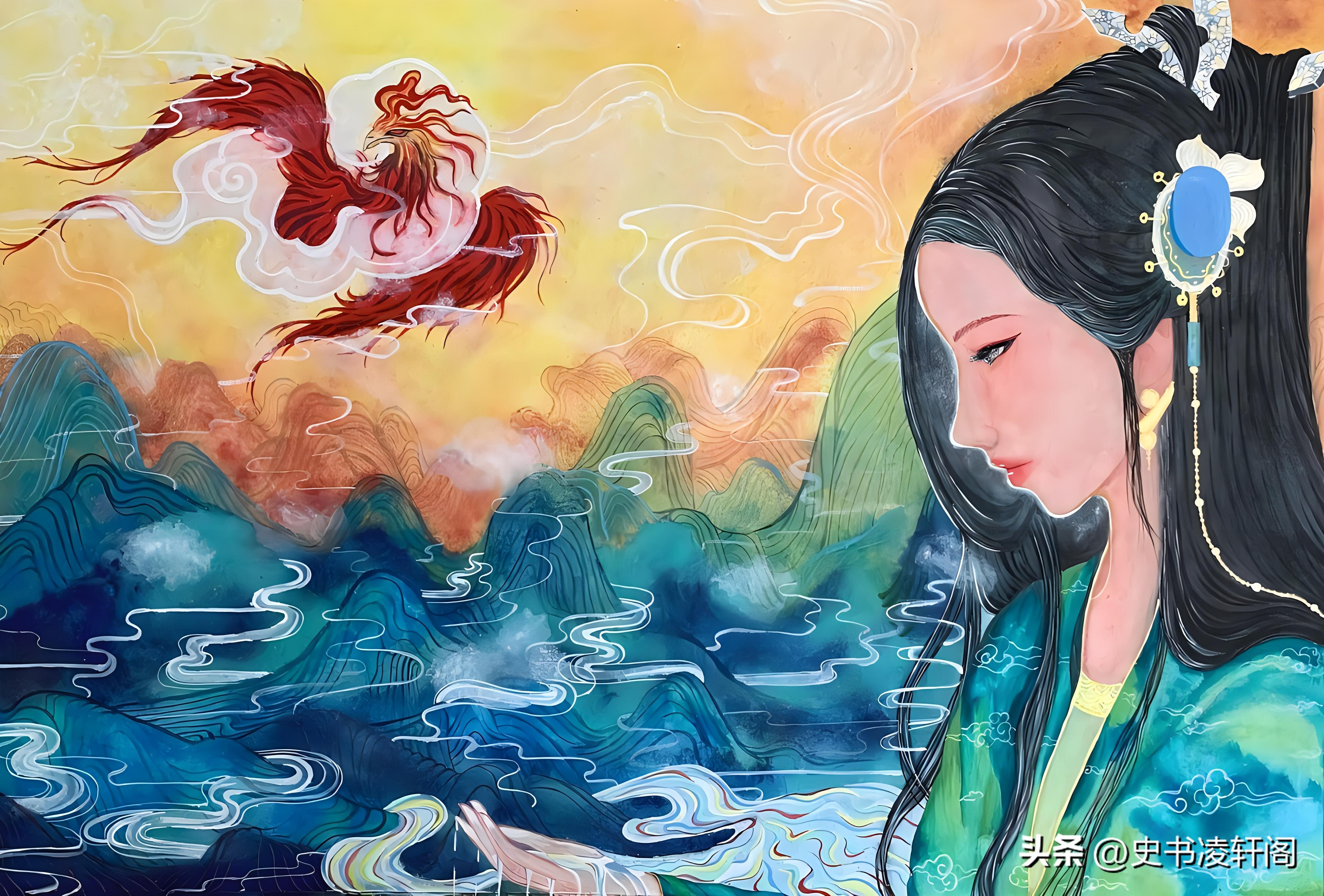 傳說扶桑木有三千丈高,一千丈粗,一眼望去根本看不到樹冠。三足金烏是帝俊的兒子,本來這十個三足金烏是輪流上班的,十天一輪班。可是突然有一天他們全都出現在了天空中,把大地炙烤的寸草不生。於是后羿用箭射落了其中九隻三足金烏。