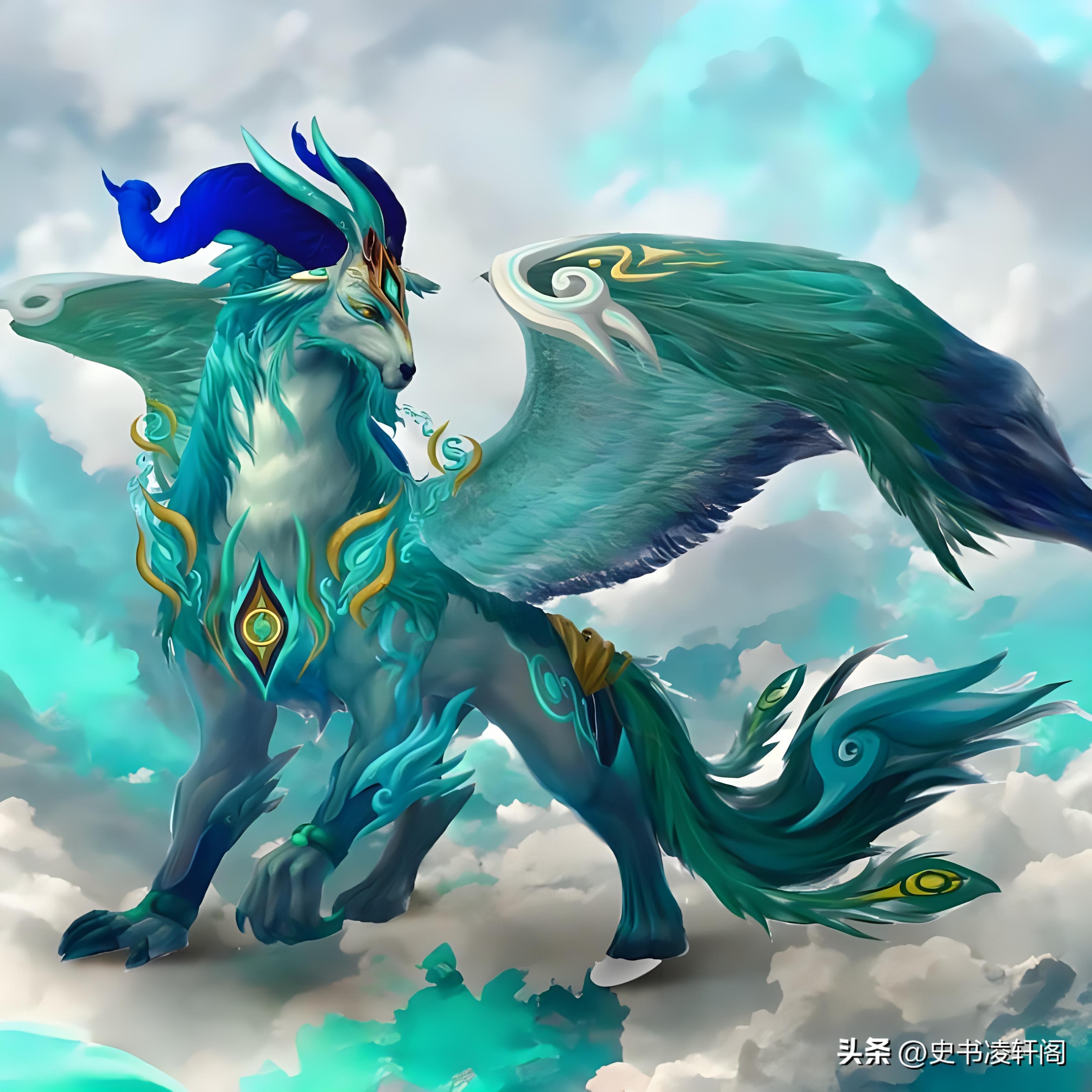 英招,其狀馬身而人面,虎文而鳥翼,徇於四海,其音如榴——《山海經》