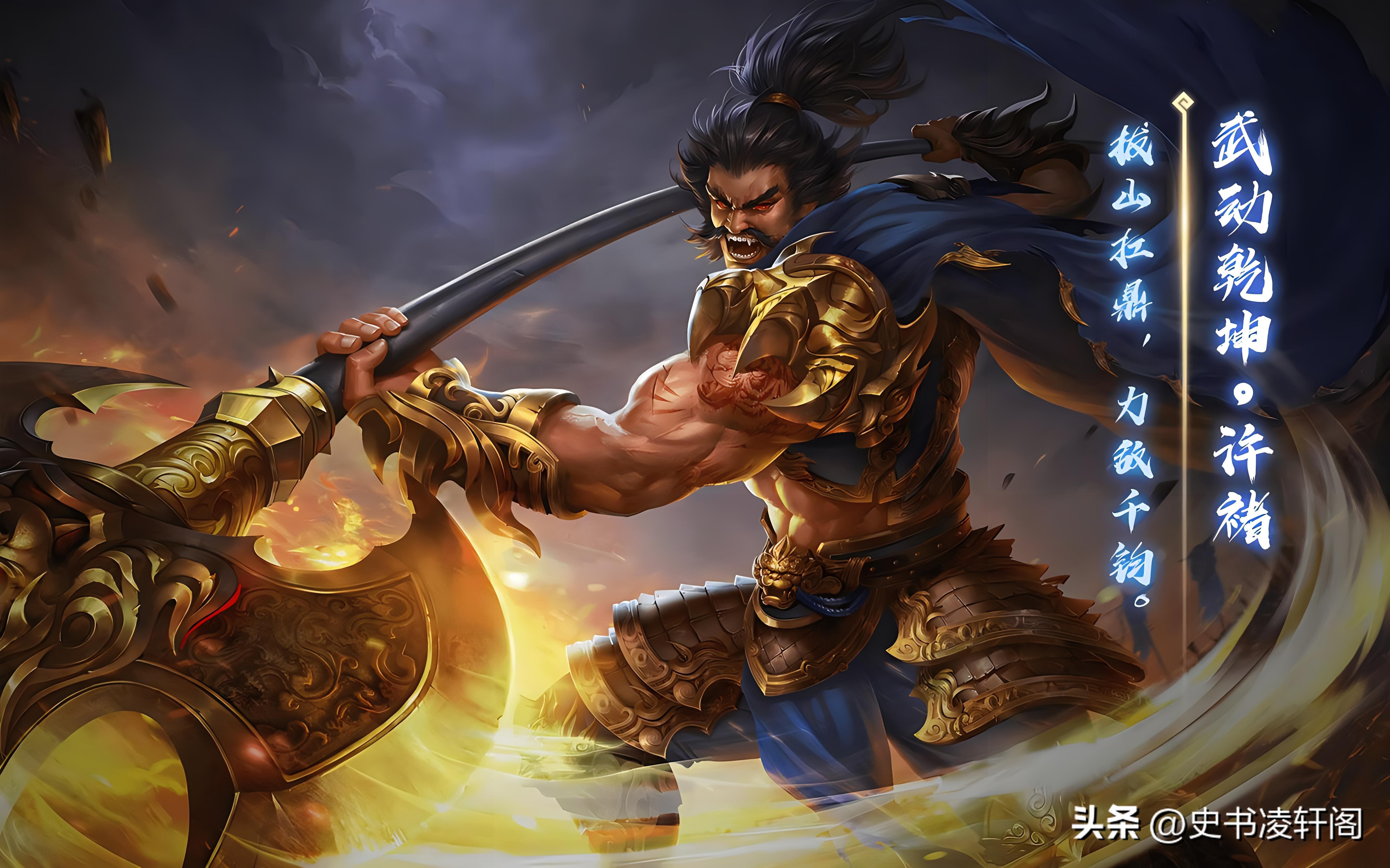 許褚出場時,跟典韋大戰了一整天,沒有分出勝負,故而他和典韋的差距幾乎爲零。