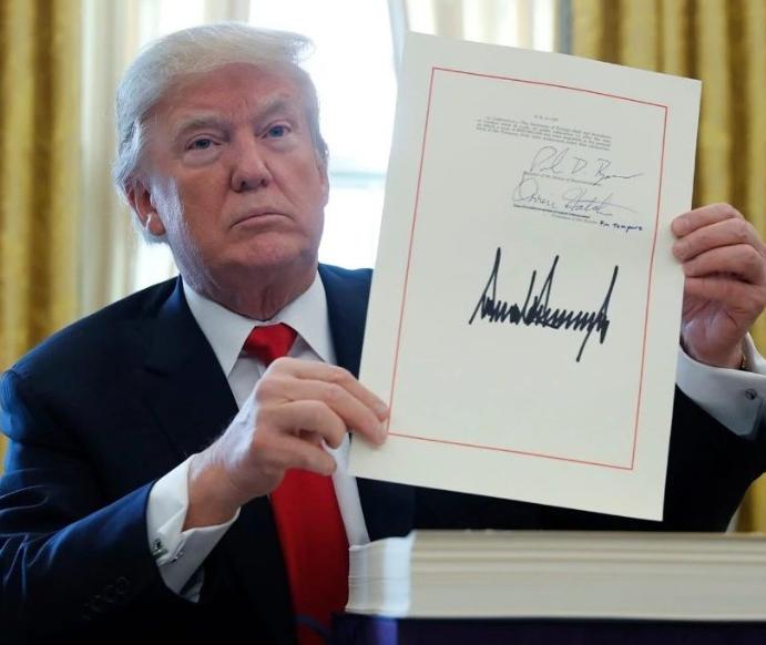 2020年1月15日,在特朗普與中國副總理簽署的貿易協定儀式上,最引人矚目的是特朗普的簽字。在簽字過程中,特朗普不斷地更換籤字筆,至少使用了20支以上的簽字筆,才寫下了自己的名字。