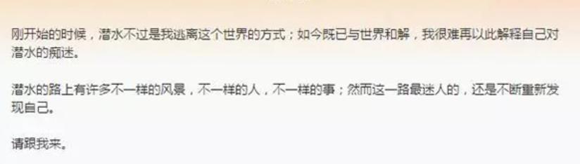 她在豆瓣上開始分享自己的潛水經歷,在自己的專欄當中,徐海燕說,潛水最開始是自己逃離世界的方式,但她已經選擇和世界和解,卻在這個過程中愛上了潛水。對於水下未知世界的探索,讓徐海燕徹底着了迷。