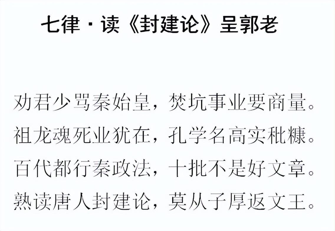 當年毛主席寫下一首《七律·讀〈封建論〉呈郭老》的詩,勸誡郭沫若不要一味批評秦始皇,秦朝的政法以及制度,將中國帶進了封建時期,功績是很大的,應該學習一下這些好的方面。