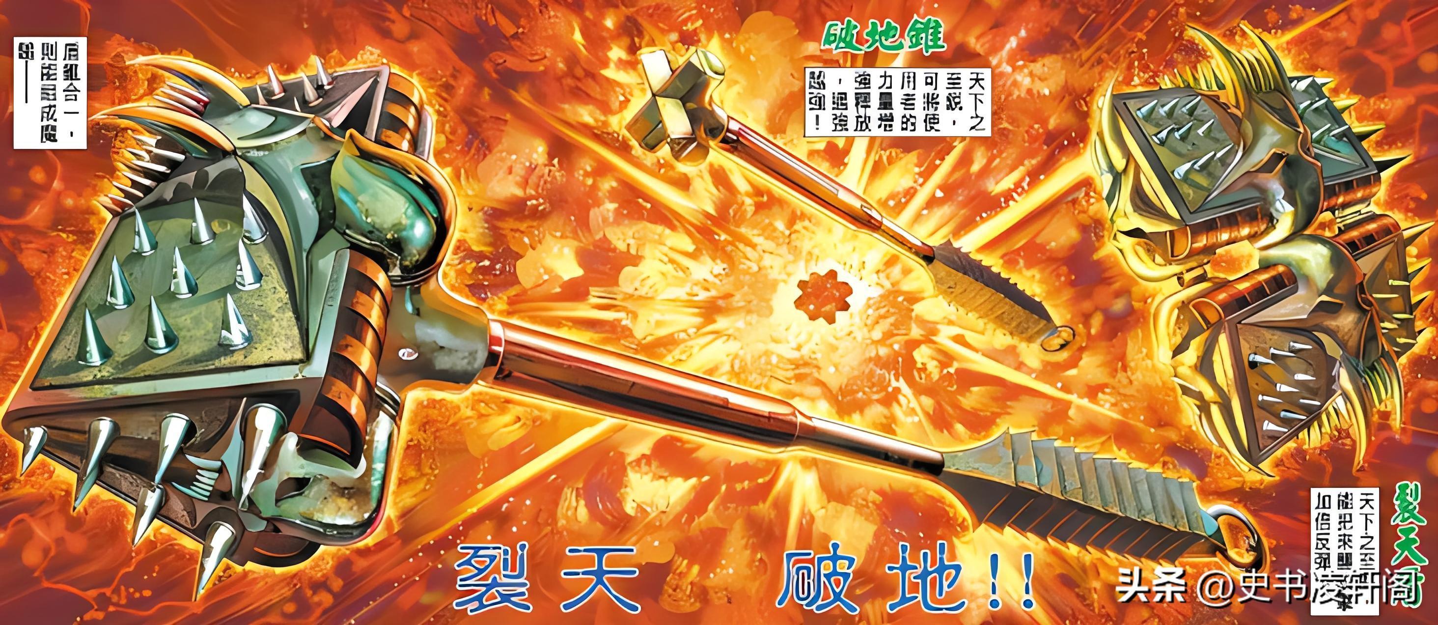 燕王深陷絕境,眼睜睜看着愛人與二女,心底湧起無邊絕望。他手中緊握息壤劍,欲以此劍了結此生。然而,在這生死交織之際,銅場之主所煉之魔珠感應到了他的絕望之情。魔珠猶如守護者般,環繞着墜入爐火中的燕王,以他的絕望爲引,吸納息壤劍與爐中金屬的精華,終於孕育出一對絕世的魔兵:裂天盾與破地錐,二者亦可合爲一體,化爲裂天破地之魔錘。