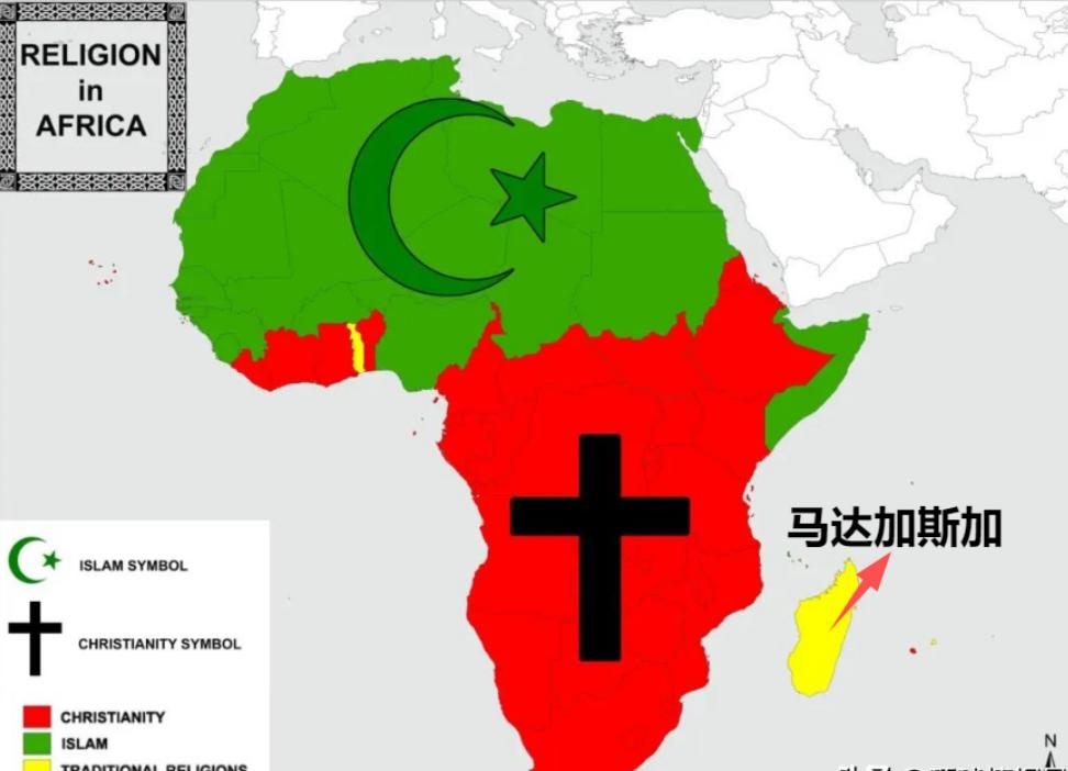 在兩者的中間部分,也就是西非以及非洲之角也存在着不少信仰伊斯蘭教的黑人,但是總得來說這樣的界限還是非常分明的。但是在這樣的非洲中,也還是存在着一個例外的,這個例外就是孤懸於大陸之外的馬達加斯加島。
