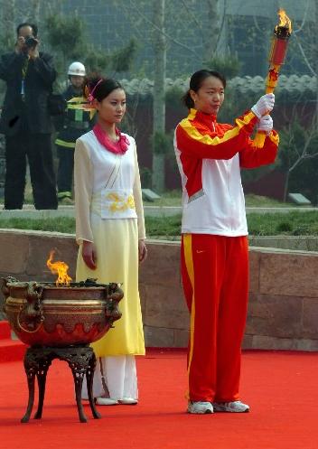 奧運冠軍陳中在拜祖大典上點燃了黃帝寶鼎。隨着舞龍舞獅、百家姓旗陣的精彩表演,典禮氛圍愈加高漲。