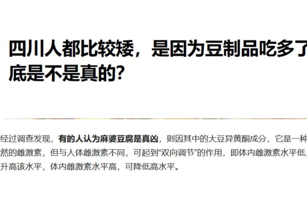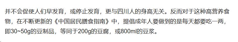 於是,又有人從飲食上推測。認爲四川人都喜歡喫豆腐,而大豆的雌激素較高,長期食用影響生長髮育。