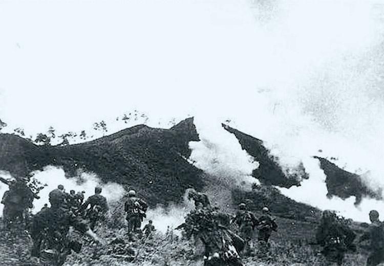 範弗利特本想捏一捏軟柿子、出出風頭,爲此他還專門叫來了記者。戰鬥開始後,美軍第7師第31團以1個步兵營、1個坦克營、8個炮兵營以及100餘架飛機,對丁字山實施空地協同作戰。