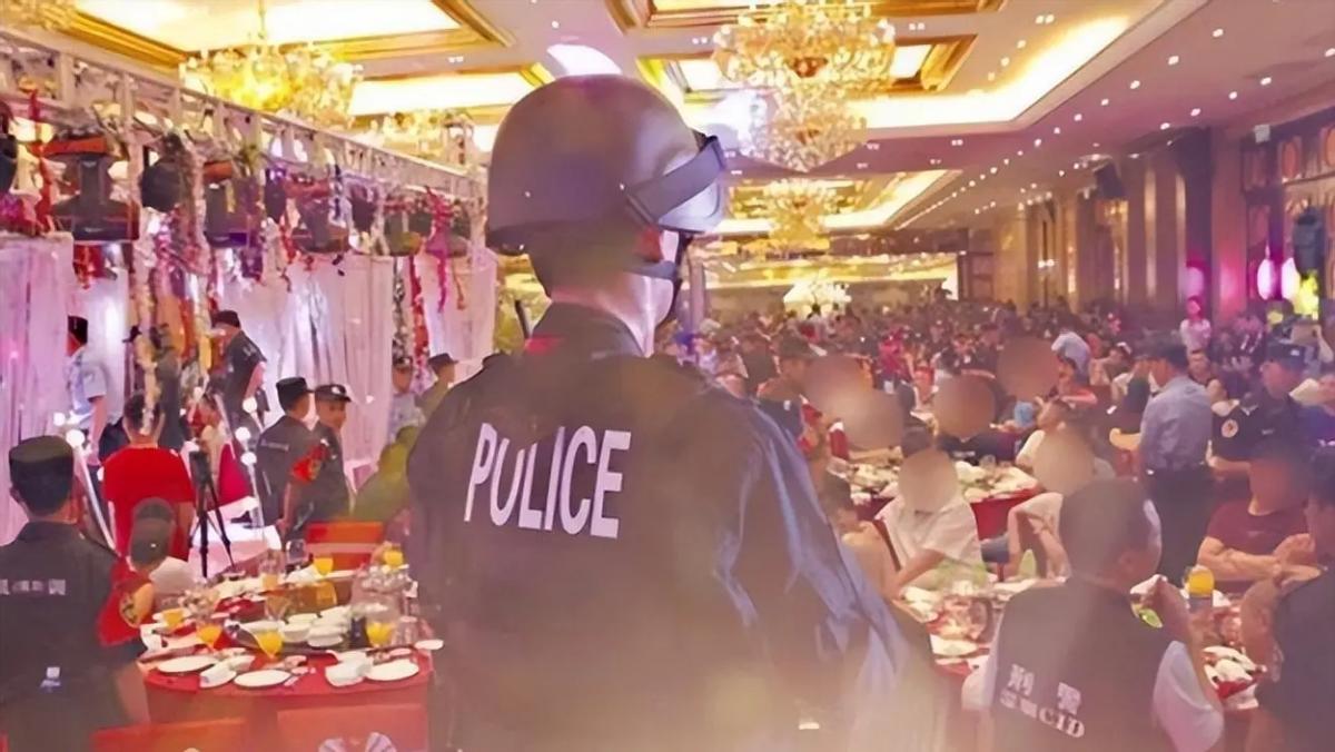 當晚7點半,警方封鎖了酒店所有的出入口,開始對舉辦婚禮的宴會廳進行合圍。這羣人正在興頭上,對警察的行動毫無察覺,即使警察到眼前時,不少人還誤以爲是婚禮準備的小節目。