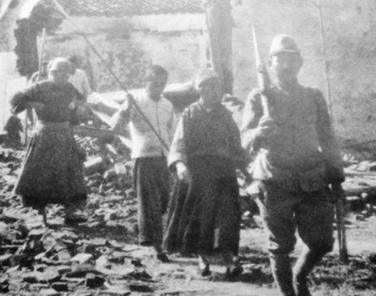 等再次回到集市上,發現年輕人被日本人統一關在了一起,每個人都用繩子拴着,院子裏只有一個日本兵在看守。突然看到有人來向軍官稟告了什麼,軍官勃然大怒將所有人召集在一起,大部隊便離開了,只剩下了哨兵一人。