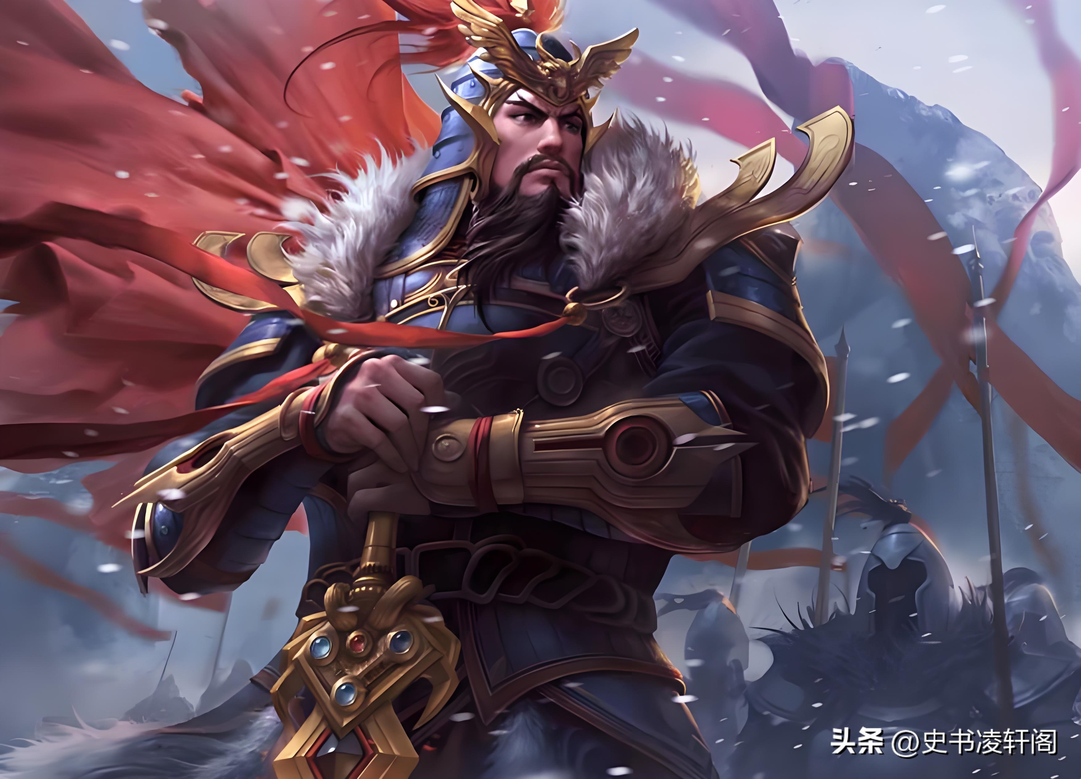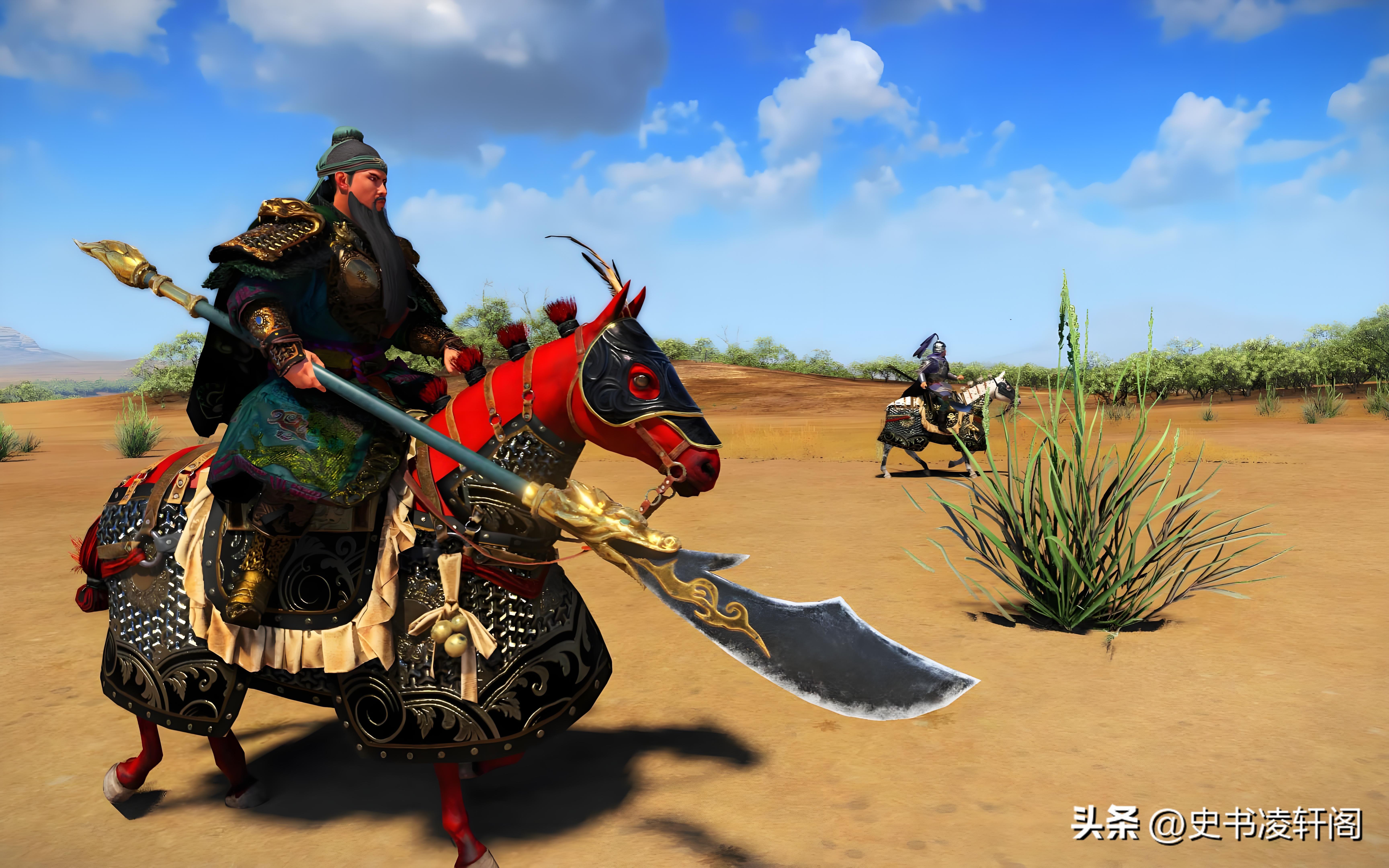 而隊伍前面,一人騎着赤兔追風馬,手握青龍偃月刀,威風凜凜,正是那漢壽亭侯關羽,他領兵在此,擋住了曹兵的去路。