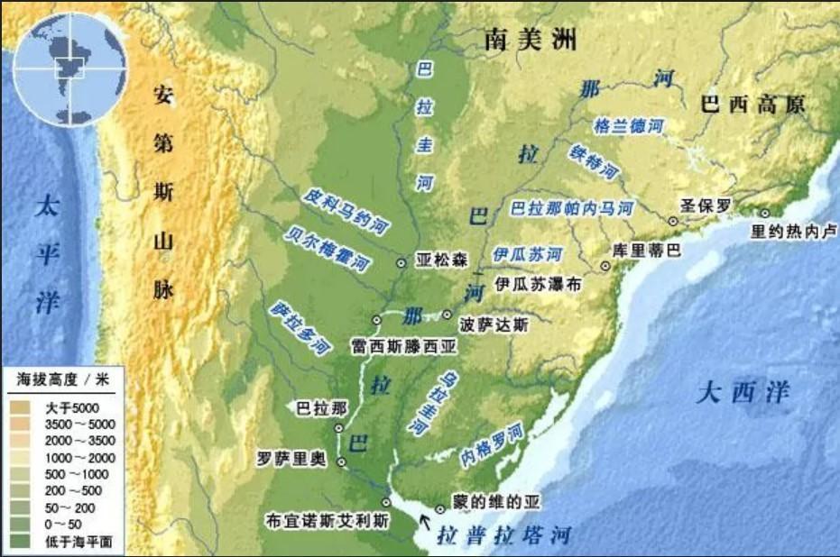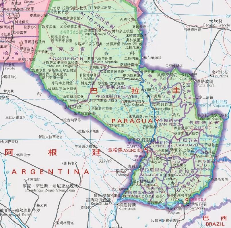 (巴拉圭,擠在巴西和阿根廷之間)