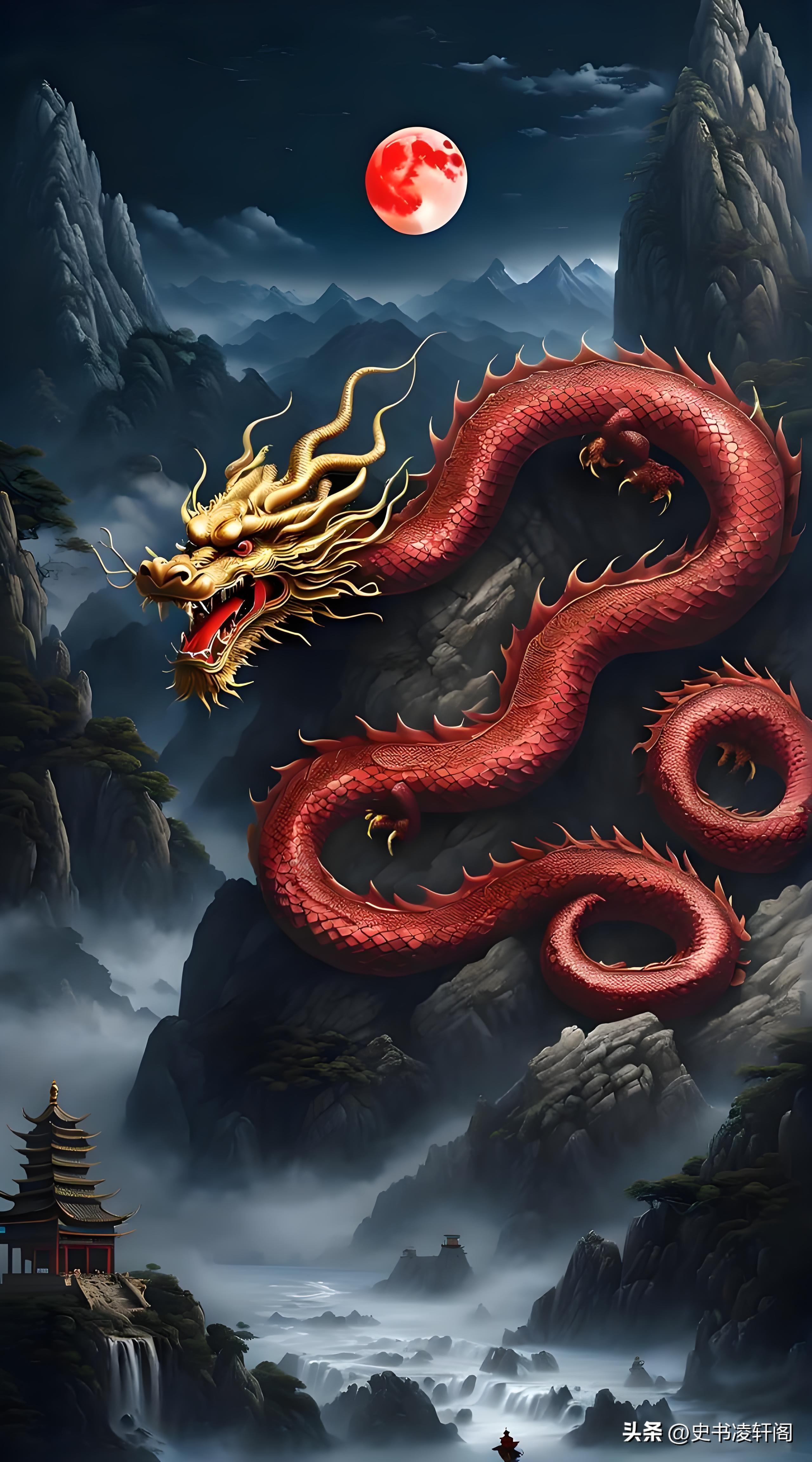 燭龍,那是一條宛如烈焰燃燒的赤龍,蜿蜒千里,身軀之龐大,彷彿一座綿延的山脈。其全身覆蓋着熾熱的鱗片,每一片都閃耀着奪目的火光,遠遠望去,就如同天邊最亮的晚霞。