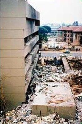 如1998年美國大使館爆炸案,是美國駐東非坦桑尼亞首都達累斯薩拉姆的大使館和肯尼亞首都內羅畢的大使館,突然一同遭遇汽車炸彈襲擊。這兩起恐怖襲擊共造成224人死亡,超過4500人受傷。美國政府的回應,僅僅是對蘇丹和阿富汗境內恐怖分子目標進行巡航導彈攻擊。