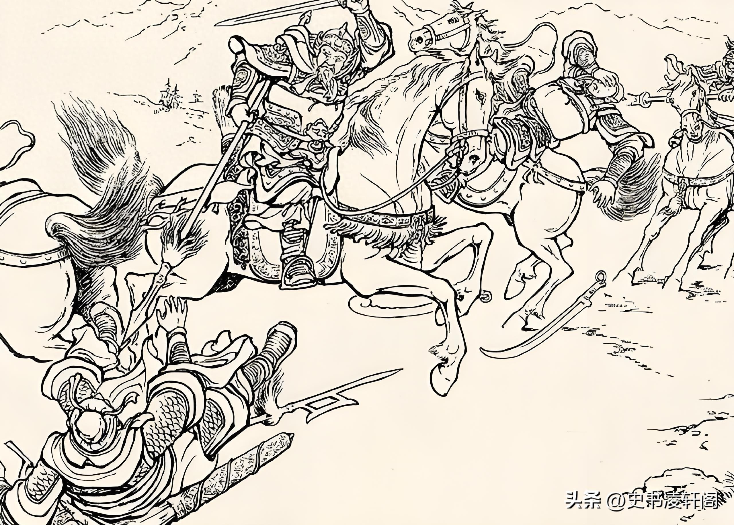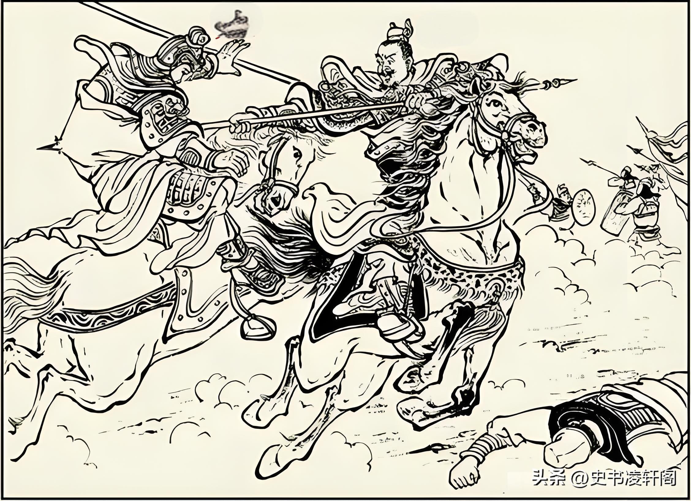 張郃冷冷地看着衝來的敵軍,他身爲三國時期的名將,自然不會被這種小兒科的攻勢所嚇倒。當兩軍交鋒時,張郃輕鬆躲過張衛的攻擊,然後猛地一槍刺出,猶如閃電般迅捷,直接將張衛刺落馬下。他的動作乾淨利落,毫不拖泥帶水,展現了一名大將的風采。