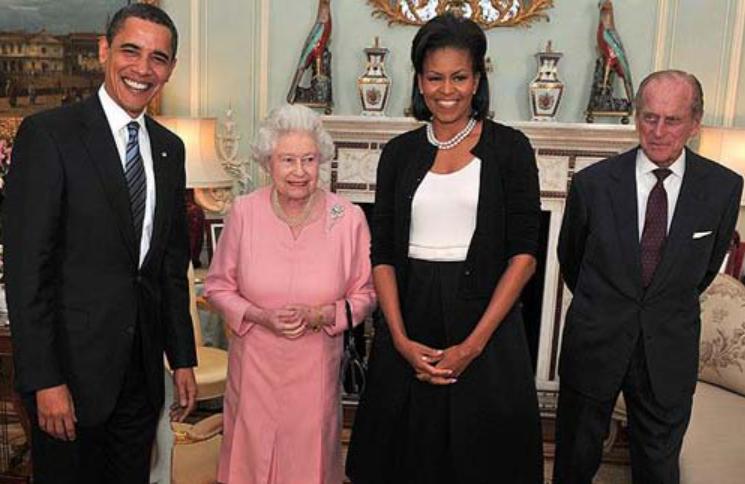 (英女王夫婦接見到訪的奧巴馬伕婦)