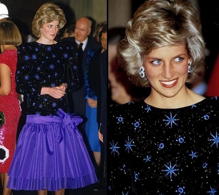 戴安娜王妃最美的星星晚禮服,藍黑拼色手工刺繡,拍出813萬天價