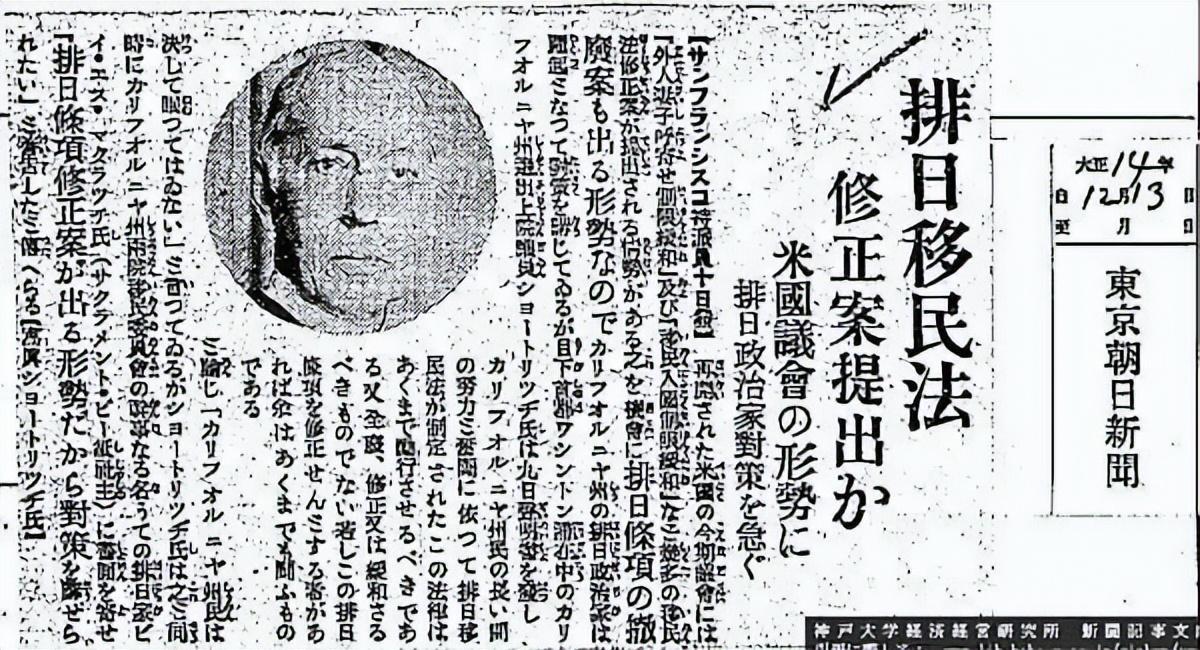 (1924年,美國出臺排日移民法後日本的報紙報道)