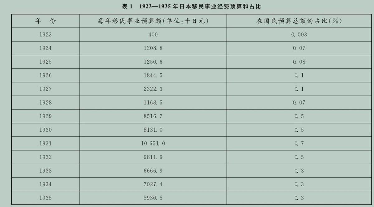 (日本在上世紀二三十年代,爲組織移民拿出的預算)