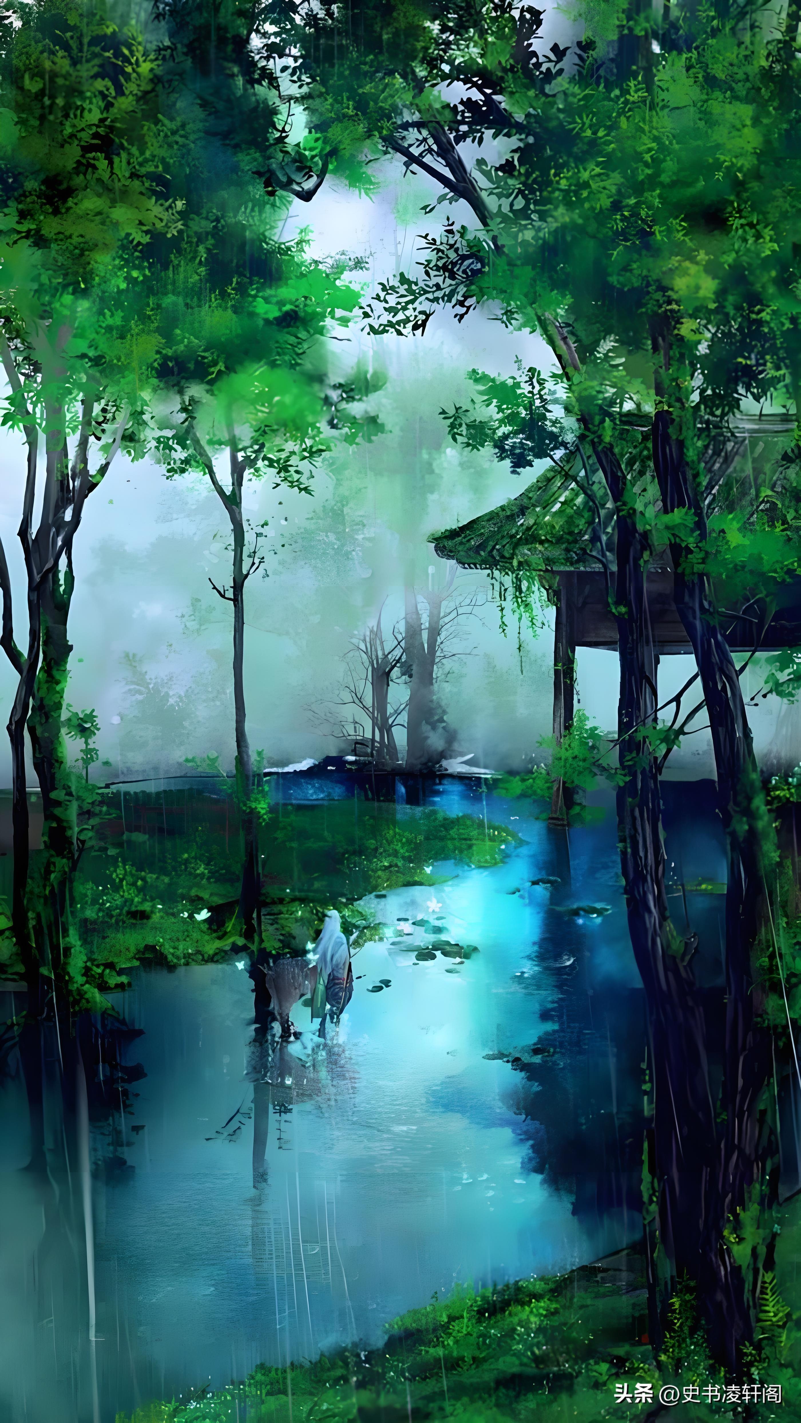 渭城的清晨,細雨如絲,輕輕洗盡了空氣中的塵埃,使得一切都顯得格外清新。客棧在雨後的晨光中顯得愈發青翠,門外的柳樹也抽出了嫩綠的新芽,彷彿在訴說着春天的到來。
