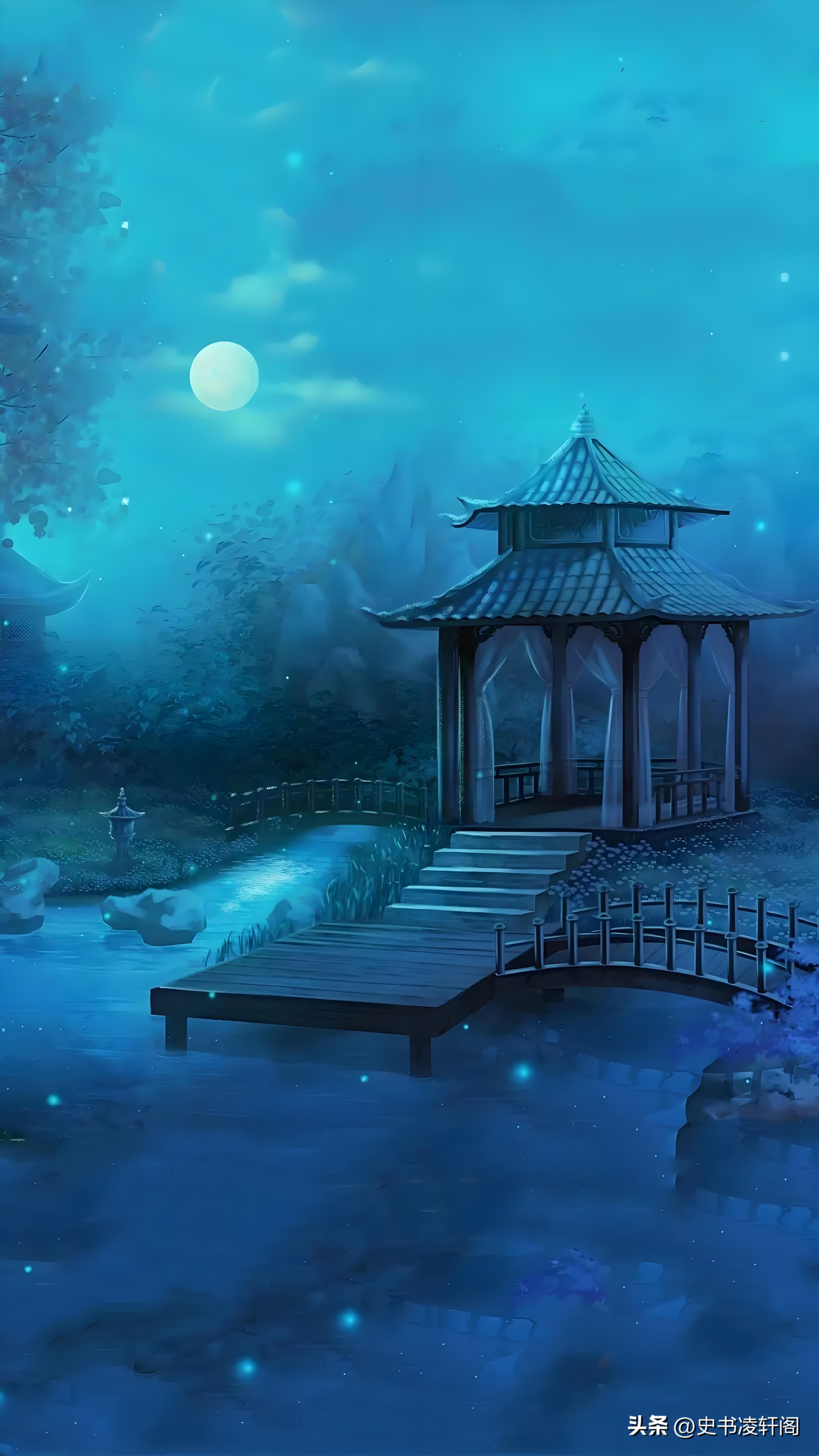寂靜的夜色中,孤獨的離亭靜靜佇立,門扉緊閉,彷彿在訴說着不爲人知的寂寞與哀傷。遠處的江山,在這寒夜中更顯蒼茫與遼闊,月光下的山河彷彿也披上了一層寒霜。