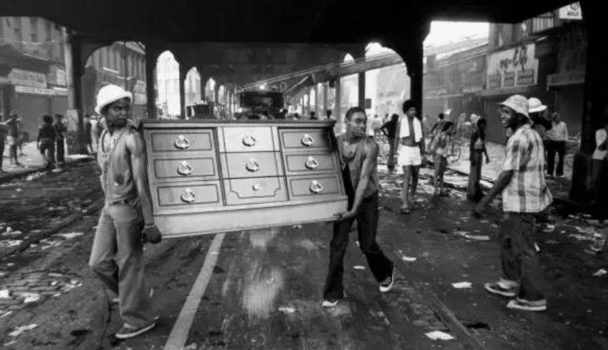 這場突如其來的大停電,就好像是某些身處底層困苦之人的“翻身機會”。以布魯克林爲起點,整個紐約都徹底陷入了瘋狂。在布魯克林的皇冠高地,僅僅5個街區內就有75家商店遭到了洗劫,而在布魯克林下屬的布什維克,瘋狂的劫匪們甚至燒燬了整條街區。