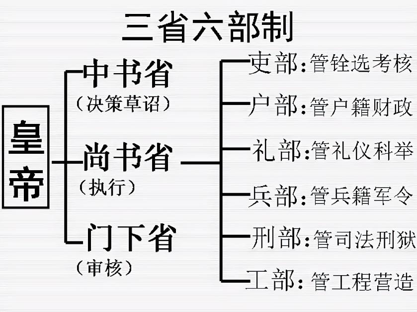 在唐朝,中央官制分爲三省六部。三省指的是中書省、門下省、尚書省,這三個單位不分高低,職級平等;六部指的是尚書省下設的戶部、刑部、吏部、禮部、兵部、工部。